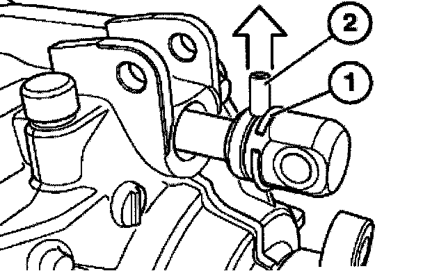 Push retaining ring (1) back and drive out straight pin (2).