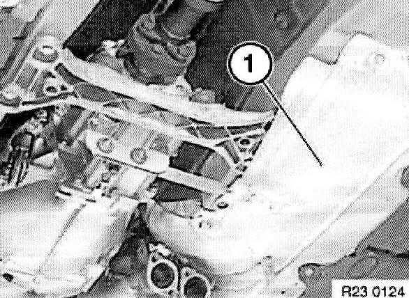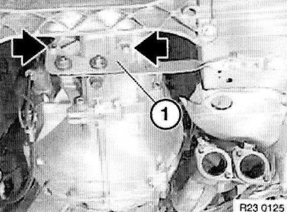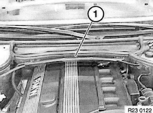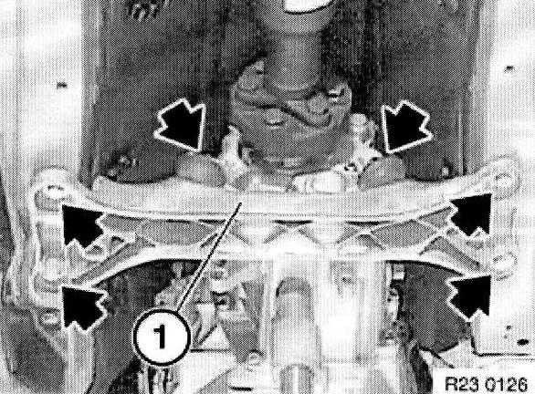 Release screws and remove cross-member (1).