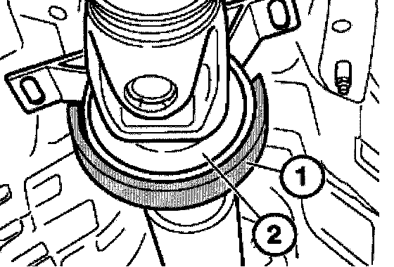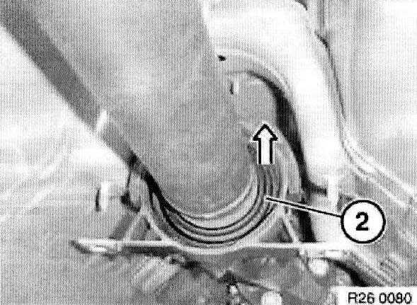 Press center bearing (2) into transmission tunnel.