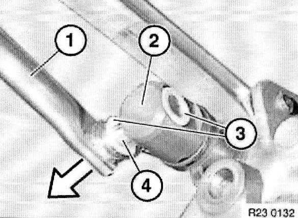 Pull shift rod (1) out of shift rod joint (2) and remove washers (3).