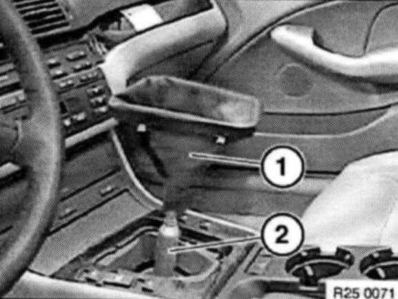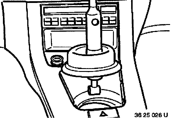 Insert special tool 25 1 110 into mount and turn 90° counterclockwise. Press mount upwards out of selector arm.
