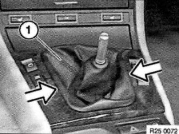 Pull rubber gaiter (1) over selector lever and insert in center console.