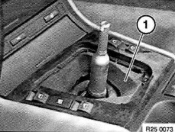 Press installation frame of rubber gaiter (1) together a little and remove rubber gaiter (1) from center console.