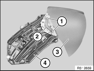 Release screws (1) and (2) and remove window (3) from window lift (4).