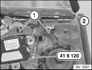 Slacken nuts (2) and (3) with special tool 41 6 120.