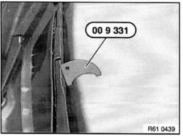 If the approach angle is too small (light gap at bottom between gauge and wiper blade), grip wiper arm special tool 00 9 332 and turn with special tool 00 9 333 in direction of arrow.