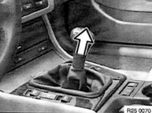 Fold rubber gaiter (1) downwards and fit on selector lever (2).