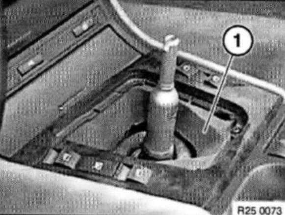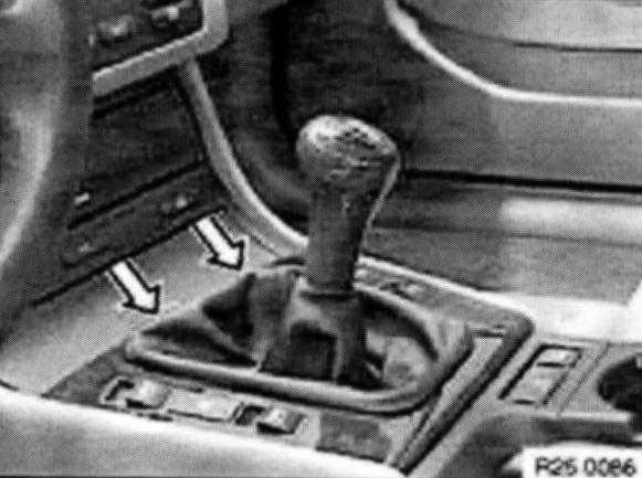 Pull rubber gaiter (1) over selector lever and insert in center console.