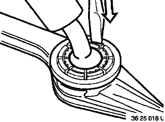 Push rubber gaiter (1) downwards until groove (2) is fully exposed.