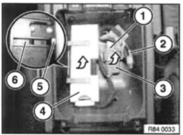 Unclip plug housing (1) and disconnect from holder (2).