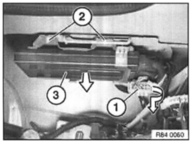 Turn plug connection (1) in direction of arrow and remove.