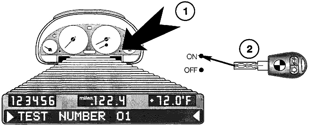 Pressing the CC button while switching the key on will enter the test mode.