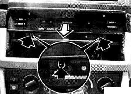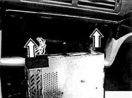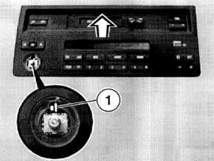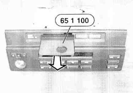 Hook special tool 65 1 100 into cassette socket and pull out radio.