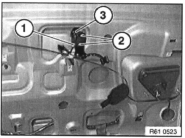 Release screws (2) and remove tilt sensor for automatic rear lid actuation (3).