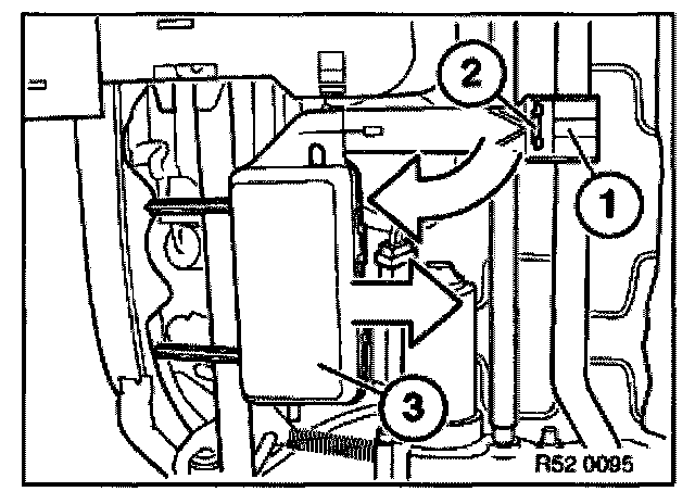 Release cable ties (1). Unlock catch (2). Turn drive unit for lumbar support (3) downwards and detach towards rear.