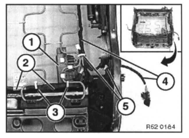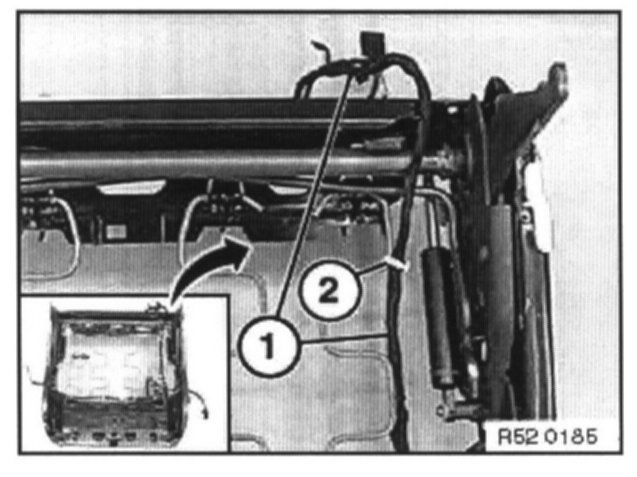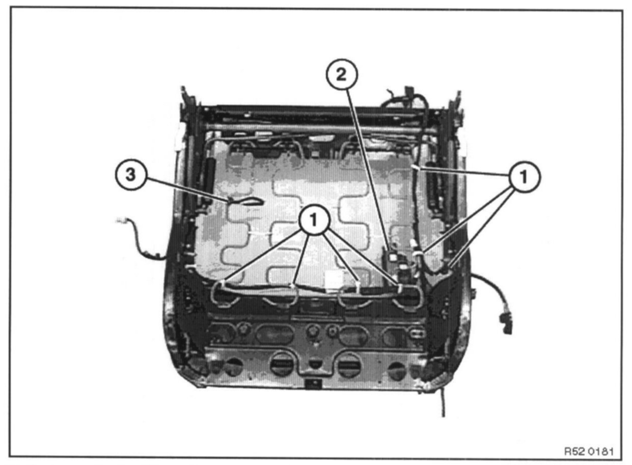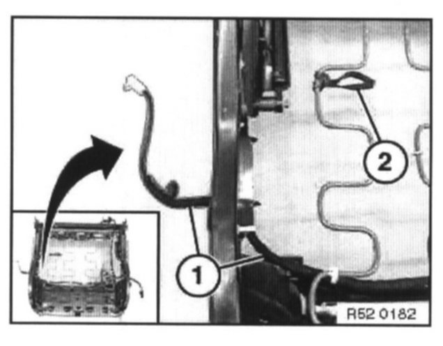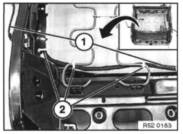 Unfasten cable tie (1), unclip connector (2) and remove wiring harness.