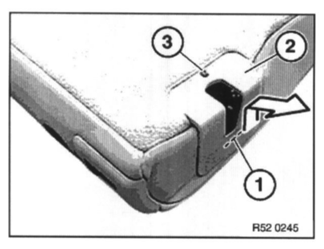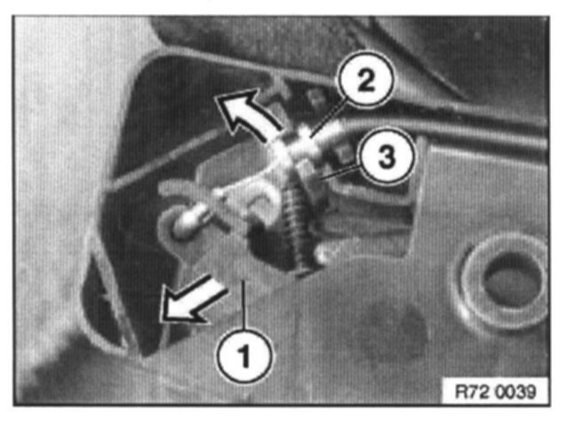 Remove sleeve of Bowden cable (2) from bracket (3) in lock of back-rest lock.