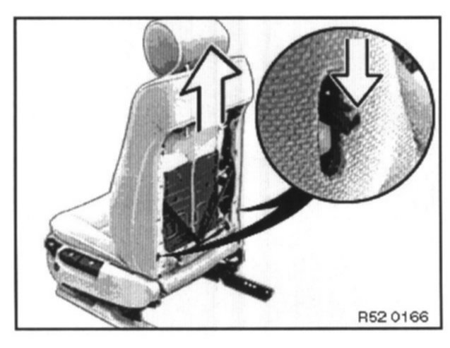Unlock left and right levers (press downwards). Pull backrest upwards to remove from seat frame and lift out of vehicle.