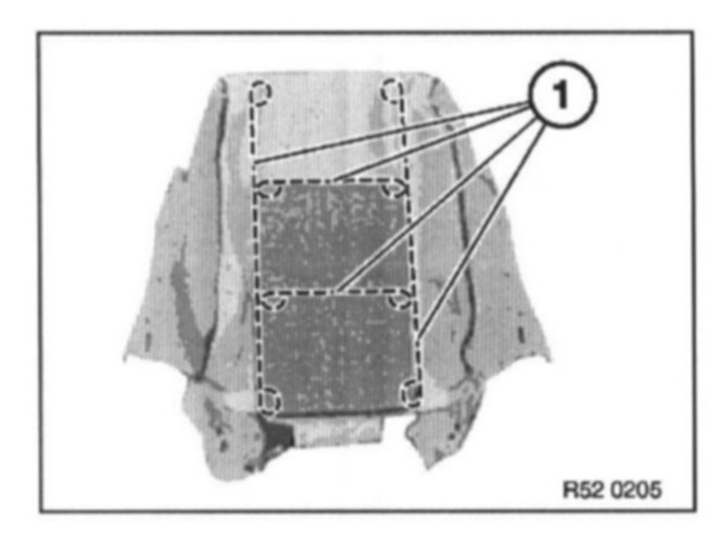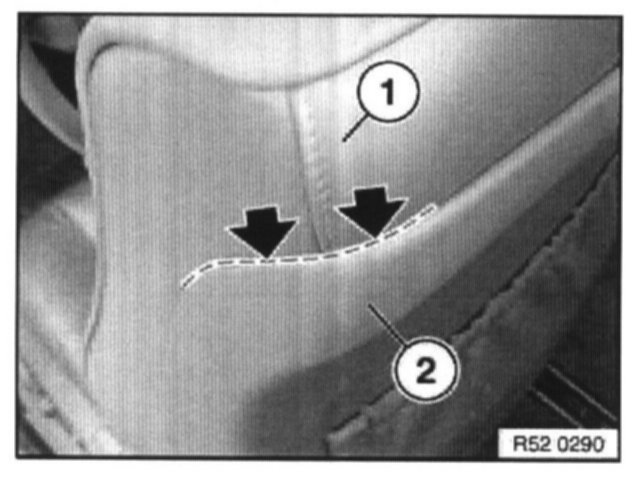 Remove trim threads (1) from backrest cover. Cut new backrest cover to size and insert trim threads.