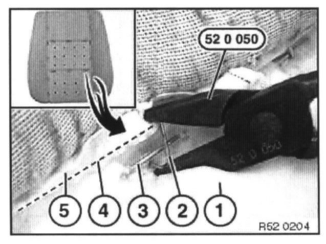 Fold in new clip (2) with special tool 52 0 050.