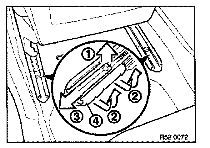 Pull off detent (1) for longitudinal seat adjustment.
