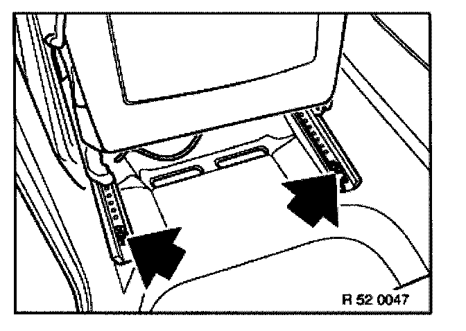 Floor carpet must not enter area between seat rails and floor panel beside screw points (grating noises).