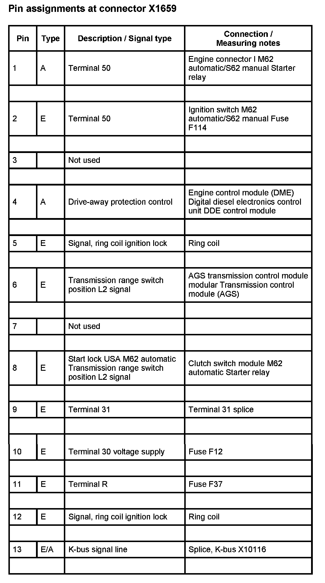 A836 Electronic Drive-Away Protection Control Unit (EWS) (As of 2001_09) (Pin Assignments)