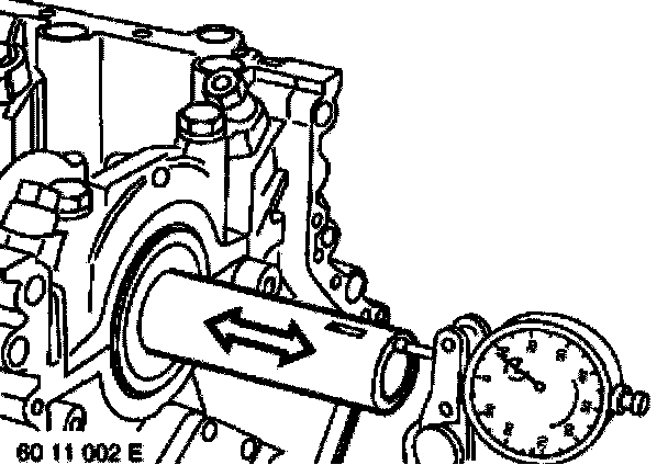 Checking axial clearance: If permitted end float is exceeded, check crankshaft, guide bearing shells and engine block, replacing if necessary,