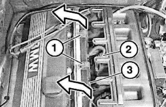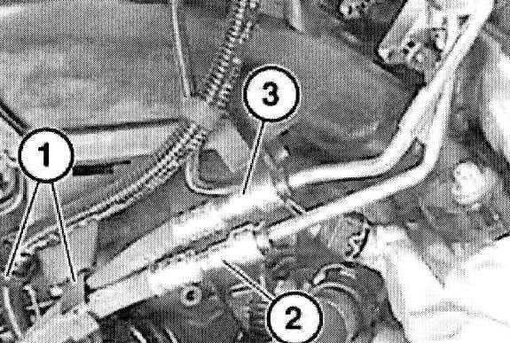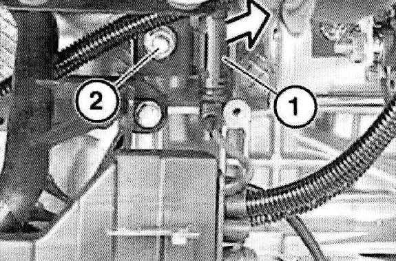Unclip fuel hoses and cable for terminal strip from holder (1) on manifold.