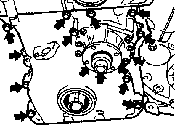 Unfasten screws and remove timing case cover.
