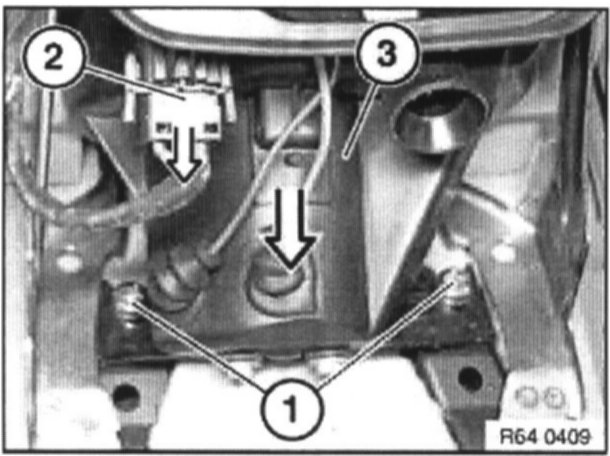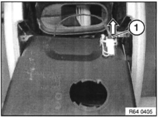Unscrew bolts (1). Disconnect connector (2). Pull out rear tan (3) towards rear.