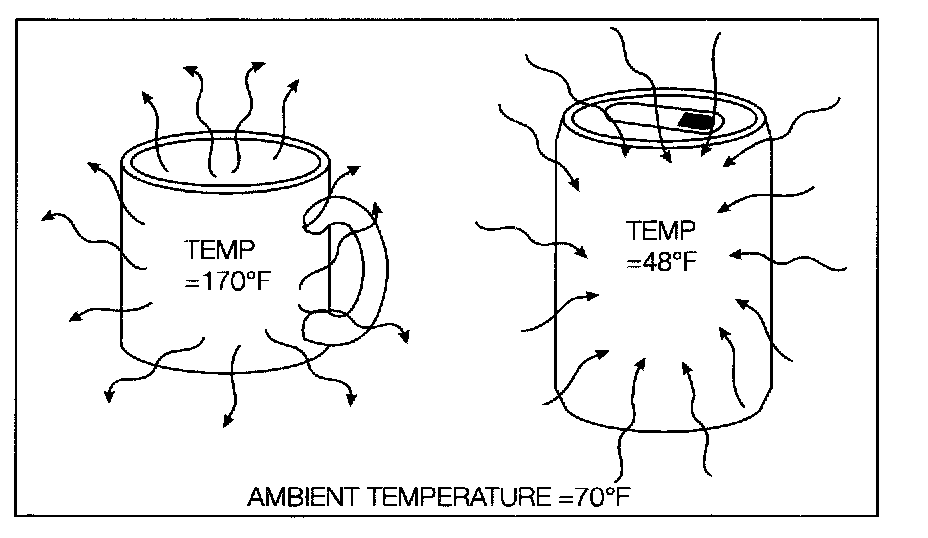 An air conditioning system's efficiency is based on how well it moves heat. Heat always travels from warm to cold. The reverse is never true. For example, if a hot cup of coffee is left standing, it will cool off, while a cold soda will get warm. The heat from the warm coffee moves to the cooler surrounding air. The heat from the surrounding air moves to the cooler soda, until a balance is reached.