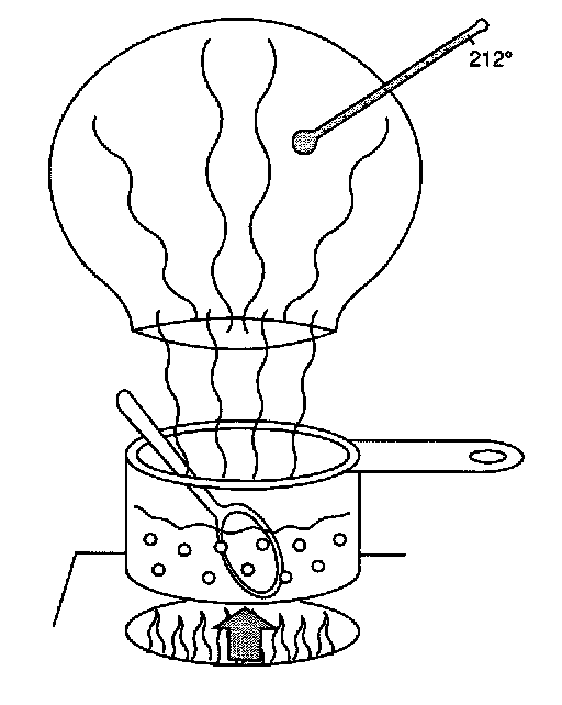 If this gas is collected in a container and checked with a thermometer; it would also have a temperature of 212°F. The temperature has not risen further; but the flame has applied an additional 970 BTUs of heat. The heat is absorbed by the liquid as it boils. It is "hidden" in the water vapor.