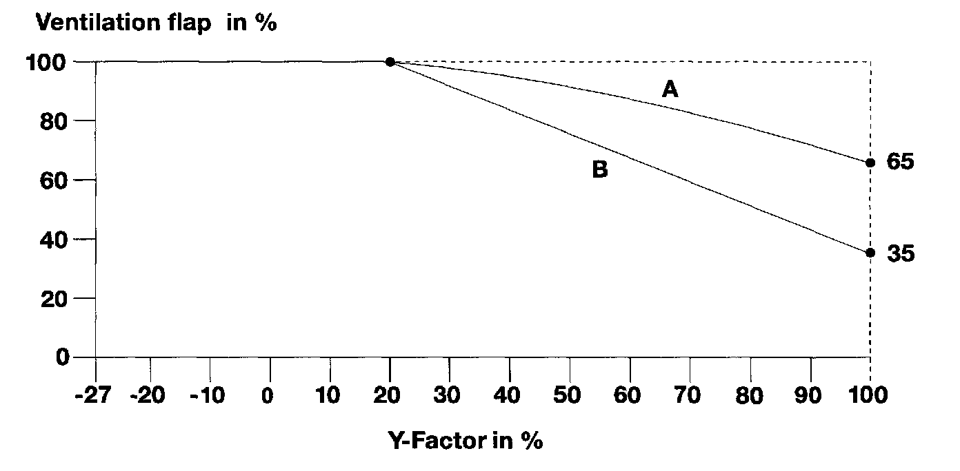 The influence of the solar sensor on the ventilation flaps is shown in the graph below.