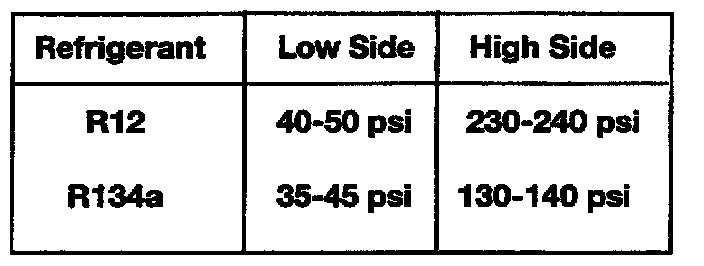 For example: The following chart shows nominal gauge readings at 90 °F, 20% humidity with the engine running @ 1500 RPM.