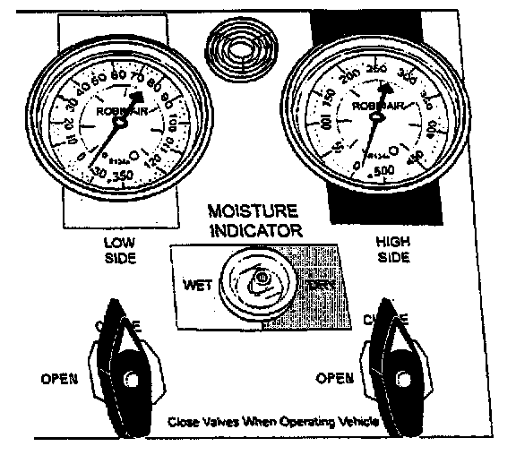 - The gauges indicate the system pressures as soon as the red and blue hoses are connected, whether the valves are open or closed.