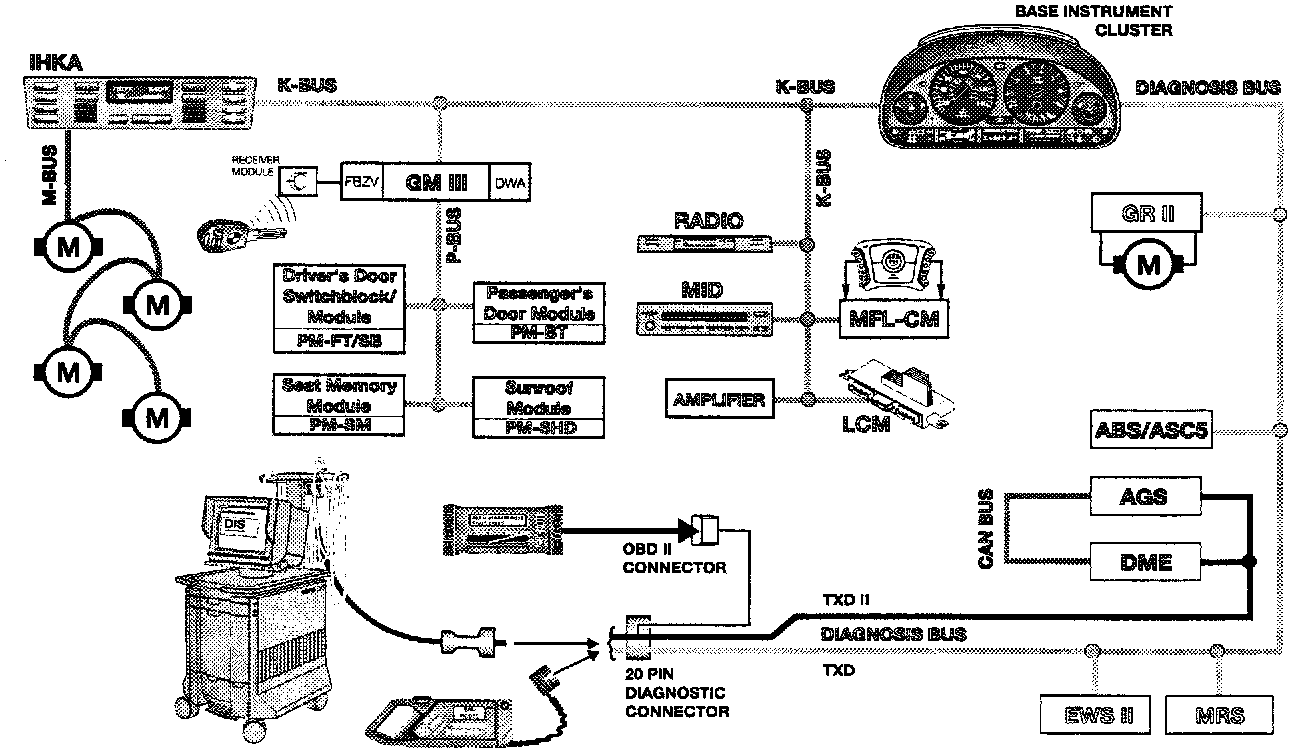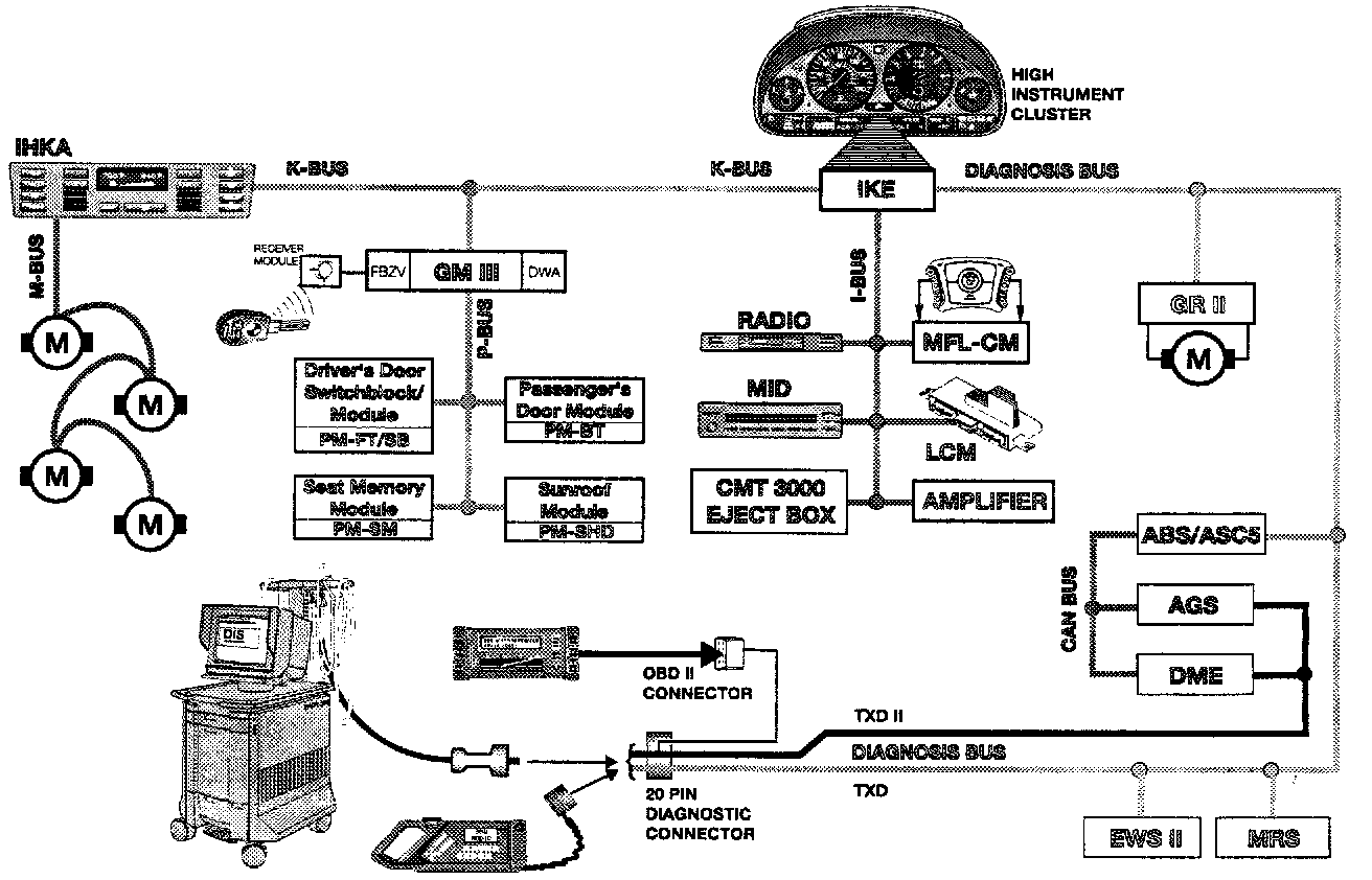 The E39 continues to make use of single wire, multi-information bus communication systems. They offers the advantages of: