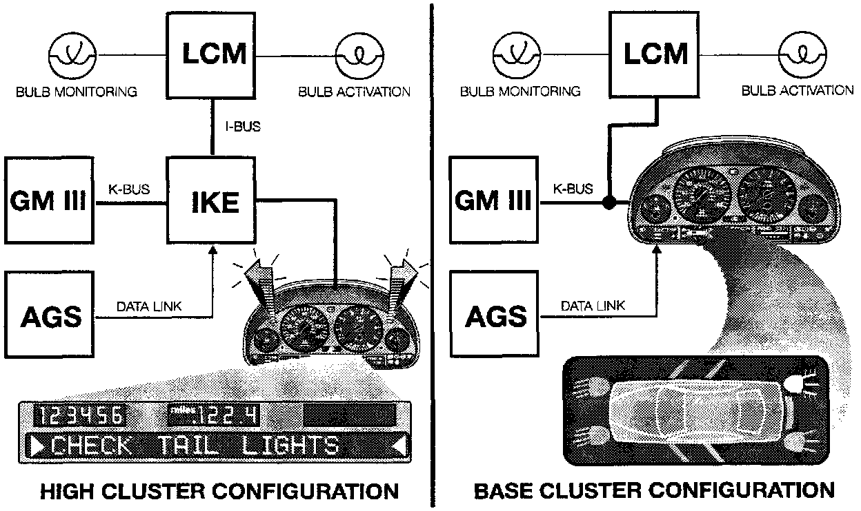 - IKE over the I/K bus for turn signal, highbeam and fog lamp indicator illumination.