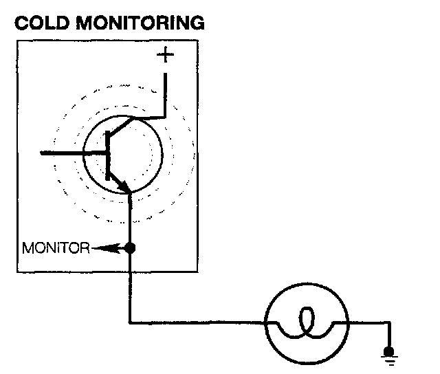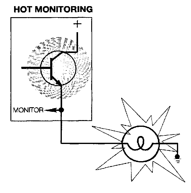- Hot monitoring takes place from the LCM by monitoring the current flow through the output stages.