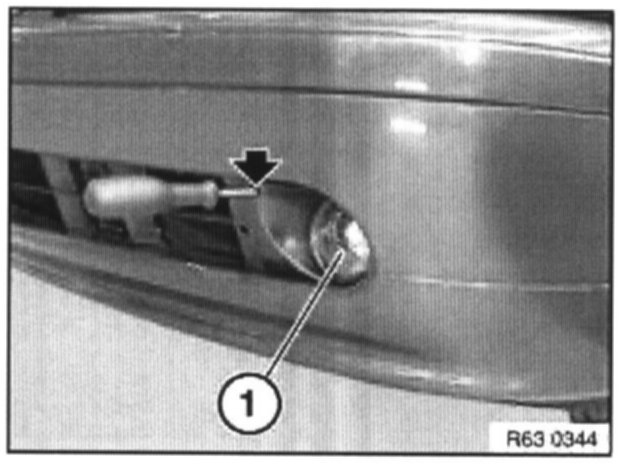Adjust fog lamp (1) at adjusting screw behind trim.