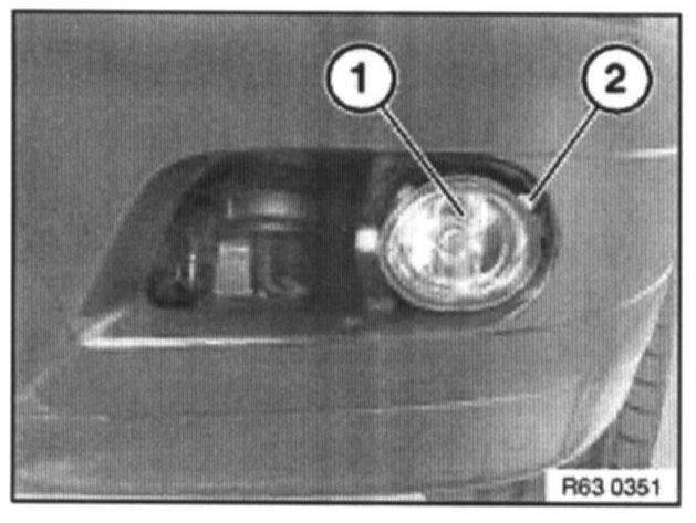 Adjust fog lamp (1) at adjusting screw (2).