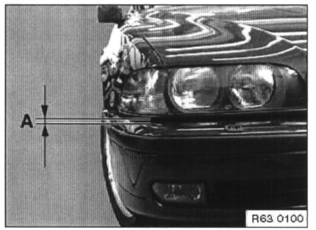 Install headlight and adjust gap between headlight and bumper gap measurement (A) approx. 5 mm.