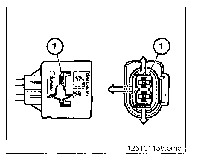 - Press lock (1) in direction of arrow and slide plug forward
