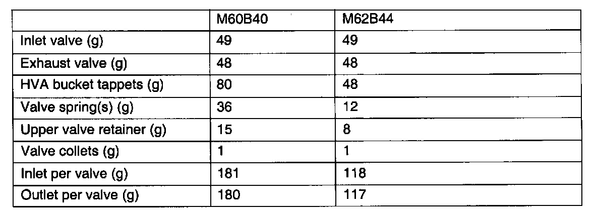 As a whole, a distinct reduction in weight of the valve train has been achieved by these measures as illustrated in the table below.