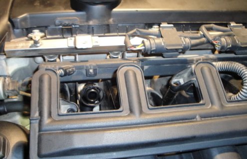 - Carefully disconnect crankcase vent hoses and remove the Oil Separator. Be careful to not break connecting clips.