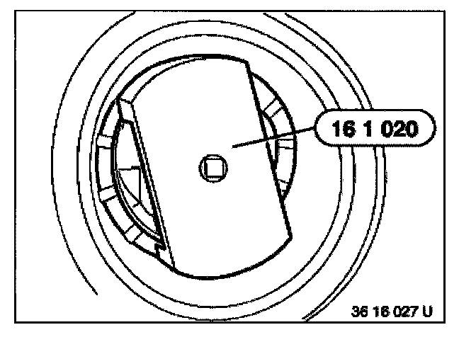 When tightening to torque, notch (3) on screw cap can be heard and felt to engage in the toothed segment (4) on the tank.