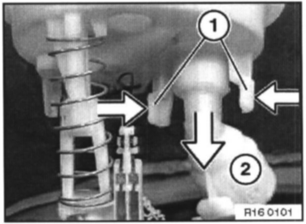 Compress tabs (1) and pull connection (2) downwards to remove.