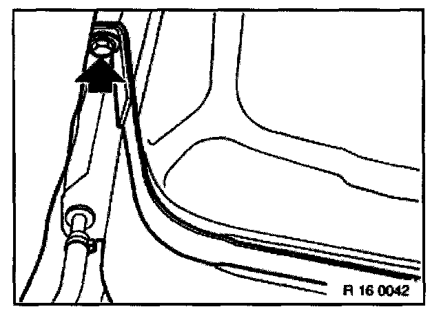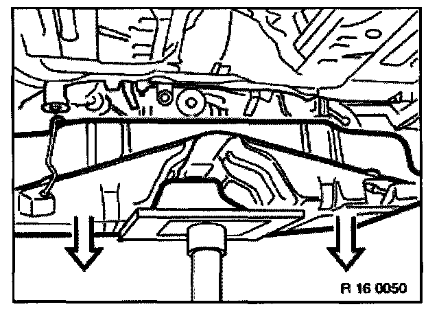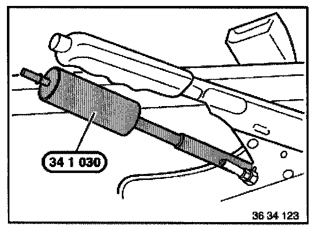 With special tool 34 1 030, unfasten lock nuts. Twist lock nuts and adjustment nuts completely out of handbrake cables and pull Bowden cables downwards out of their guide tubes.