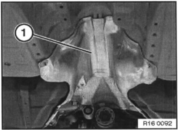 Unfasten screw and remove cover from rear axle bearing (1).