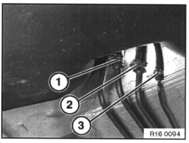 Unfasten hose clips (1 return line, 2 inlet line), mark fuel lines and remove hoses.